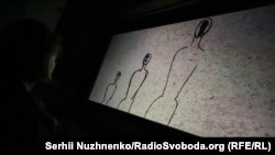На цьому рисунку без назви зображені фігури без облич. На їхньому місці – серп, молот, хрест і труна.