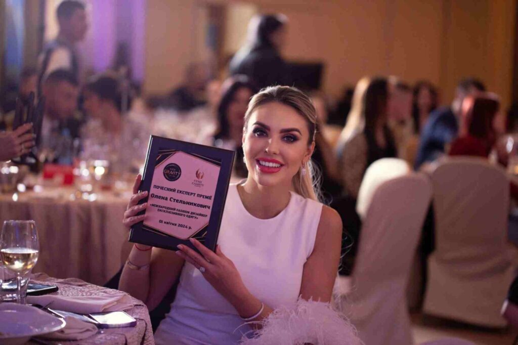 Днями Олена Стельникович, почесна експертка премії Kids Gravity, отримала відзнаку “Міжнародний fashion-дизайнер ексклюзивного одягу”. Олена створює вишуканий та елегантний одяг для жінок під власним брендом ELEN OST. Вона завжди мріяла створювати сукні, в яких жінка зможе почуватися королевою.