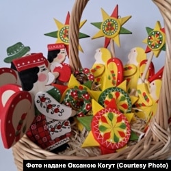 – Десь до 20. Іграшка для дітей та іграшка на ялинку – це дуже дві великі різниці. Верхівка на ялинку, прикраса на двері. У Європі вішають віночки на двері, а ми придумали віночок з дерева зі стрічкою. На ній два ангелики, а посередині ‒ зірка.
