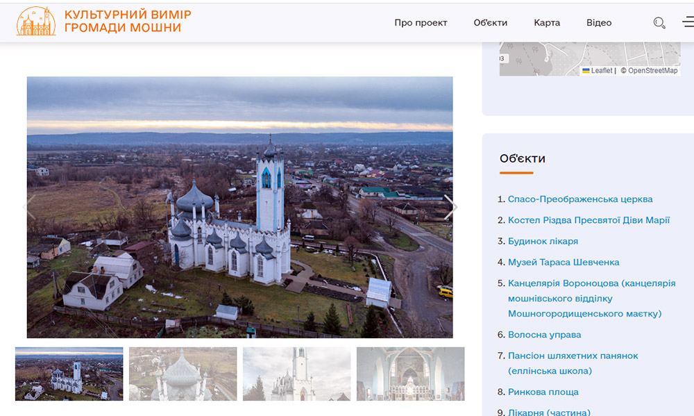 Відтепер це унікальне село має ще й свою унікальну сторінку в мережі Інтернет. Проекту “Культурний вимір громади – село Мошни” за фінансової підтримки IZOLYATSIA та Platform for Cultural Initiatives створено командою ГО «Україна Інкогніта» у складі Роман Маленков , Aндрій Яровий, Максим Плахотний, Микола Якименко та багато інших. Тепер громада має і буде доповнювати історичну інформацію, а всі відвідувачі сайту зможуть роздивитися і покрутити тривимірні моделі унікальних пам’яток.