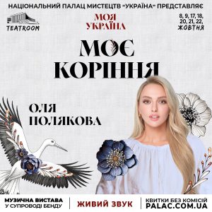 Найяскравіша зірка української сцени Оля Полякова виступить у моновиставі «Моє коріння» – вечорі української ДНК. Співачка з’явиться перед глядачем у більш драматичному і відкритому образі. На відстані витягнутої руки ви побачите трансформацію жінки від молодої дівчини, до зрілої та сильної особистості, що ототожнює образ України.