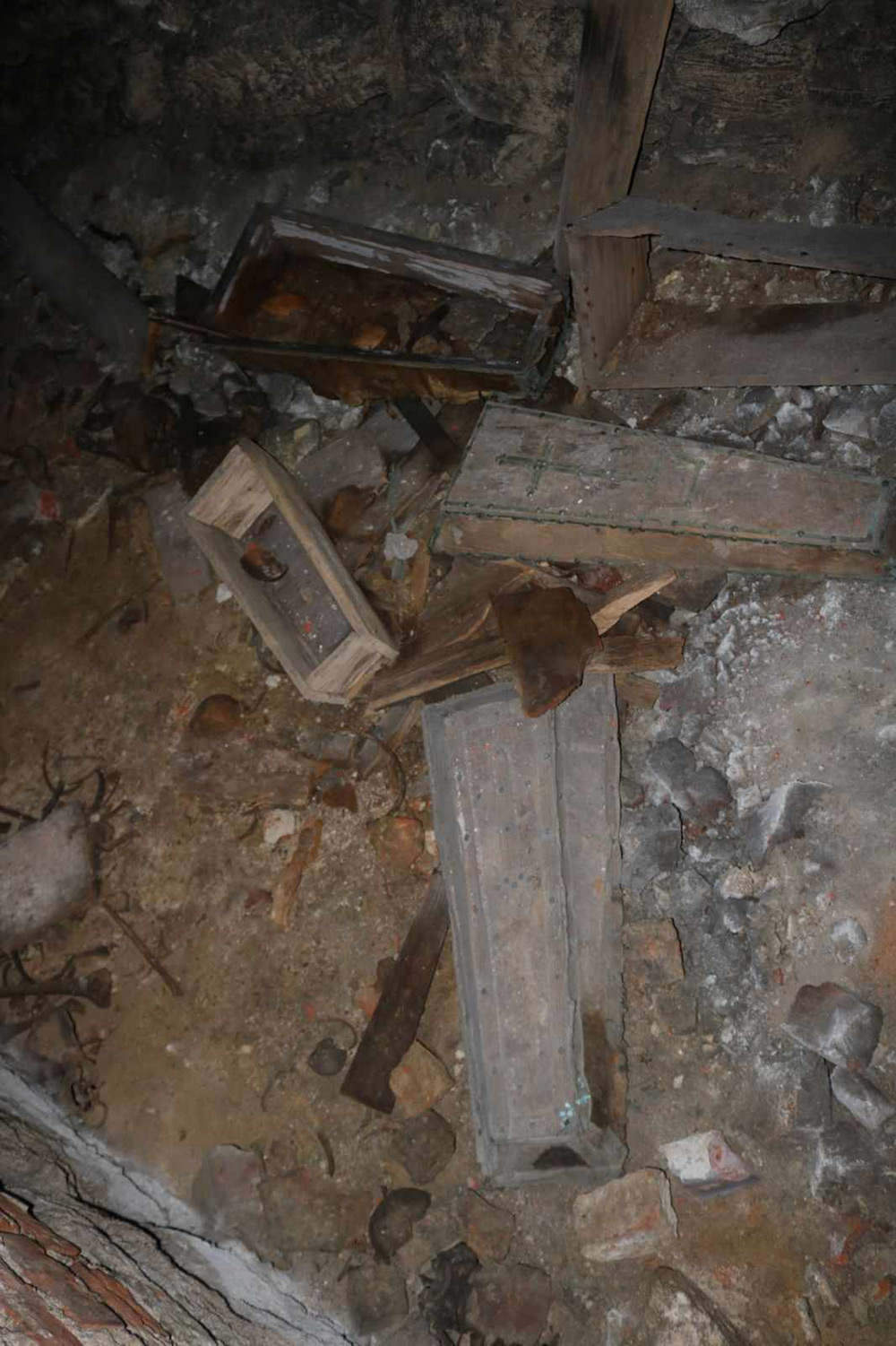 “Коли ми спустилися у крипту, побачили знищені поховання. Розкриті і розтрощені труни, кістки померлих складені в одному місці, їхній одяг, складений у купу, в іншому. З побаченого можна зрозуміти, що останки зумисне діставали з могил, витрушували кістки, щоб виявити цінні предмети. З дитячих поховань навіть здерті натрунні хрести, які могли бути з дорогоцінних металів. Ми помітили також ґрунт, який, ймовірно, просівали у пошуках цінностей», – розповідає Василь Ільчишин.