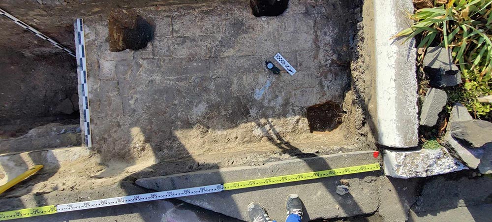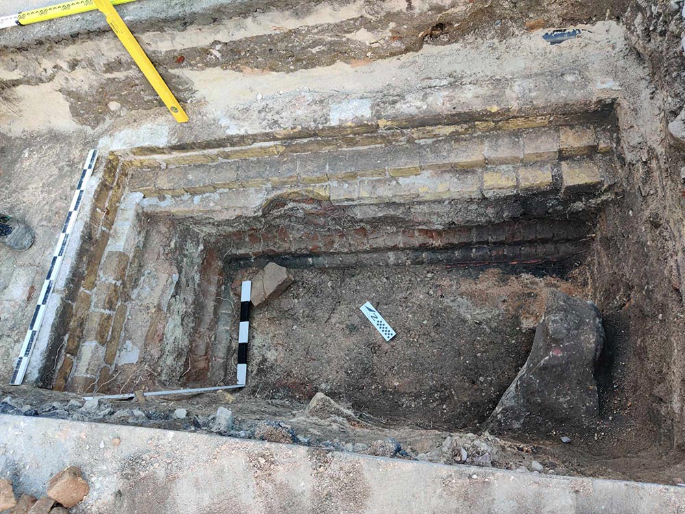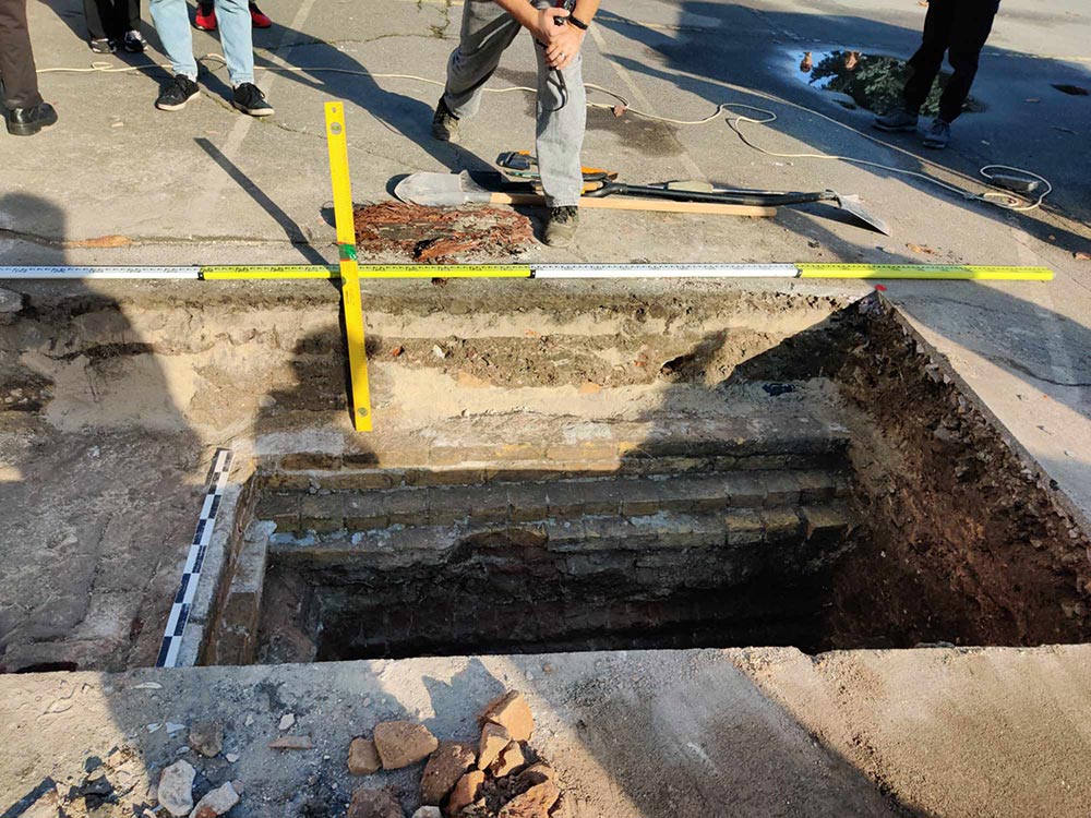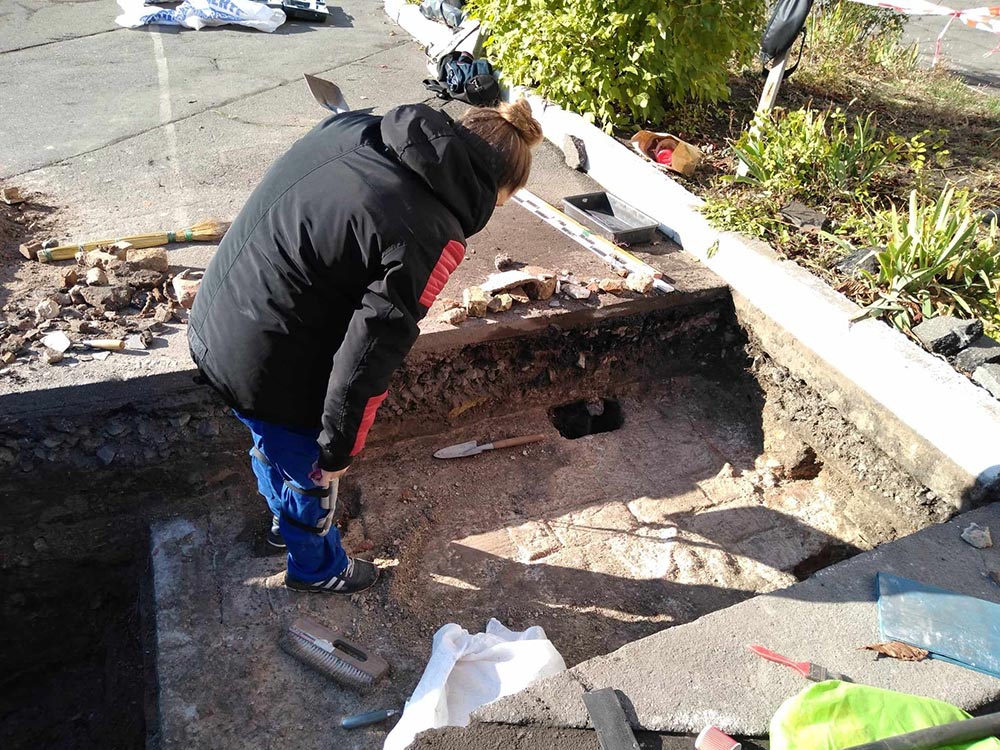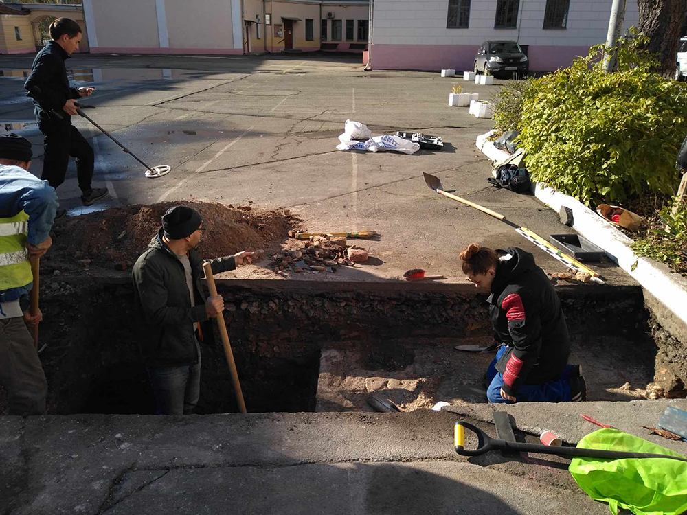 ПОПЕРЕДНІ РЕЗУЛЬТАТИ. Була закладена розвідувальна траншея (близько 4,2 х 1,2 м). Винайдено мурування з червоної цегли на глибині від 0,45 м від сучасної денної поверхні (1,7 × 1,2 × 0,8 м).