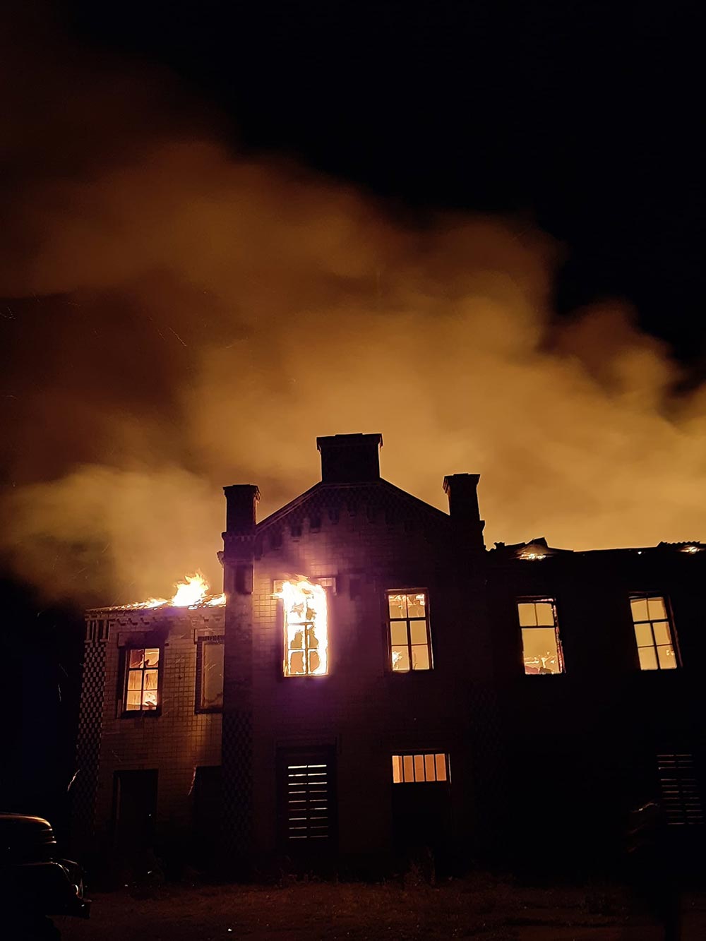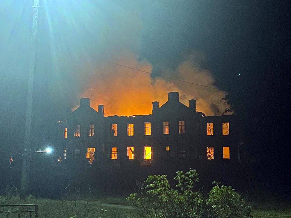 Станом на зараз (23:21) будівля все ще горить, її намагаються загасити. Всі світлини – Тарас Коновалов.