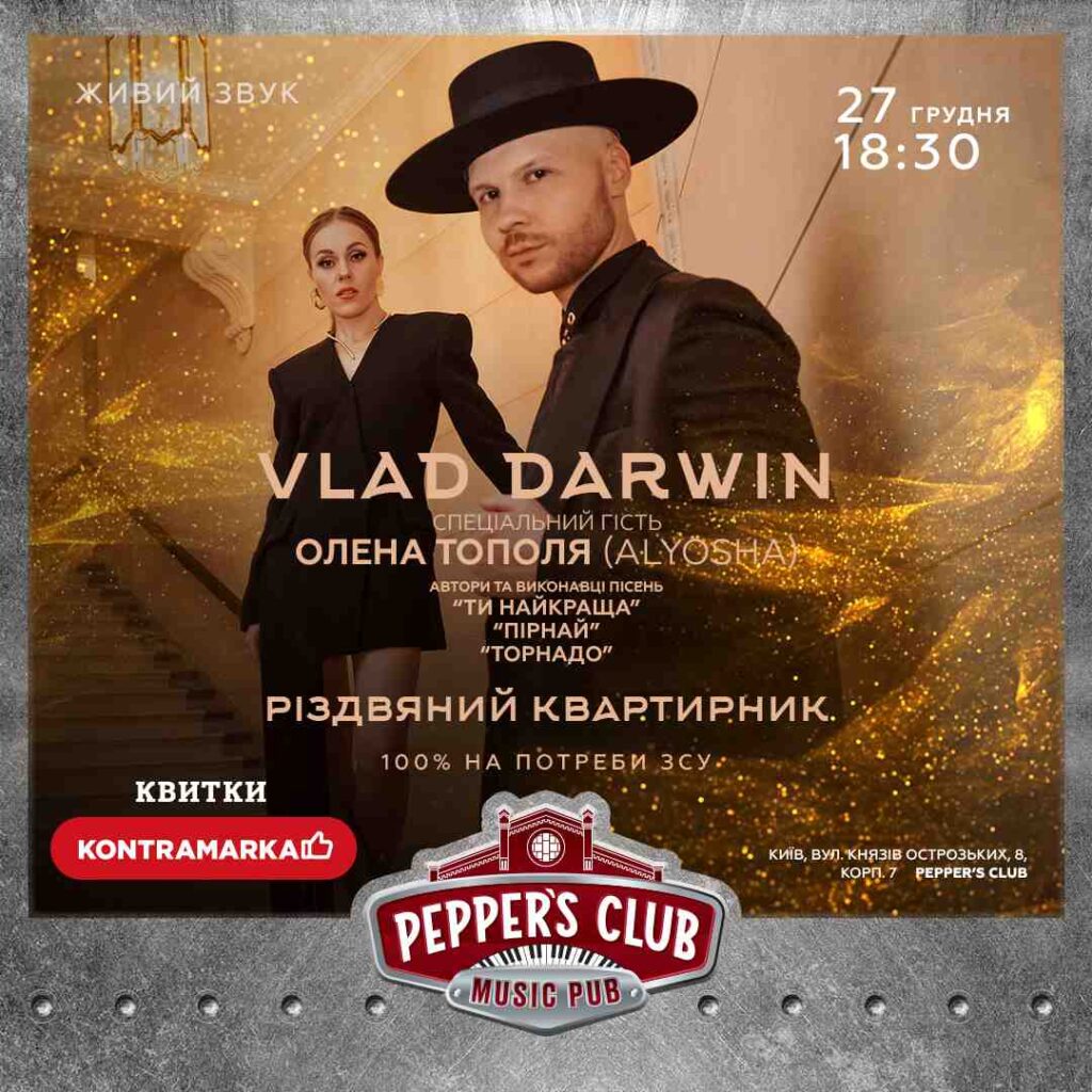 27 грудня 2023 року відбудеться святковий різдвяний квартирник від Vlad Darwin. Спеціально запрошеною зірковою гостею стане українська співачка Олена Тополя