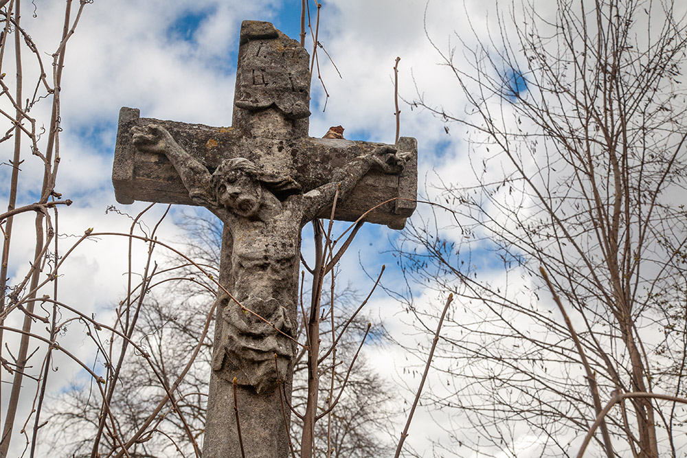 Вразив величезний, понад три метри заввишки камінний хрест. На загал це типовий для кінця ХІХ середини ХХ ст.ст. надгробок типу «обрубане дерево», але у даному випадку майстер підійшов до «модної» на той час теми дуже нетривіально. Подібного бачити не доводилося.