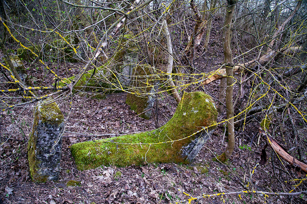 Натомість єврейський (він діяв від початку XVIII століття та до середини ХІХ ст.) – вразив як непрохідними хащами так і досить фактурними надгробками. На жаль більшість із них вкриває товстий шар смарагдового моху. Це дуже мальовниче, але для того аби все це розчистити і зафіксувати потрібно цілий десант із кількох десятків волонтерів і принаймні повноцінний день важкої праці. Із відкрить – дуже нетиповий надгробок у вигляді саркофагу. Якщо надгробки у вигляді плоских стел чи «чобітка» є звичними для цієї частини Поділля (Сатанів, Тарноруда, Городок, Кузьмин, Смотріч, Шарівка, Китайгород тощо) то «саркофаги» є лише на старому єврейському цвинтаря Кам’янця-Подільського. Дослідники збираються повернутися до неї пізніше аби ретельніше розчистити епітафію та перекласти напис.