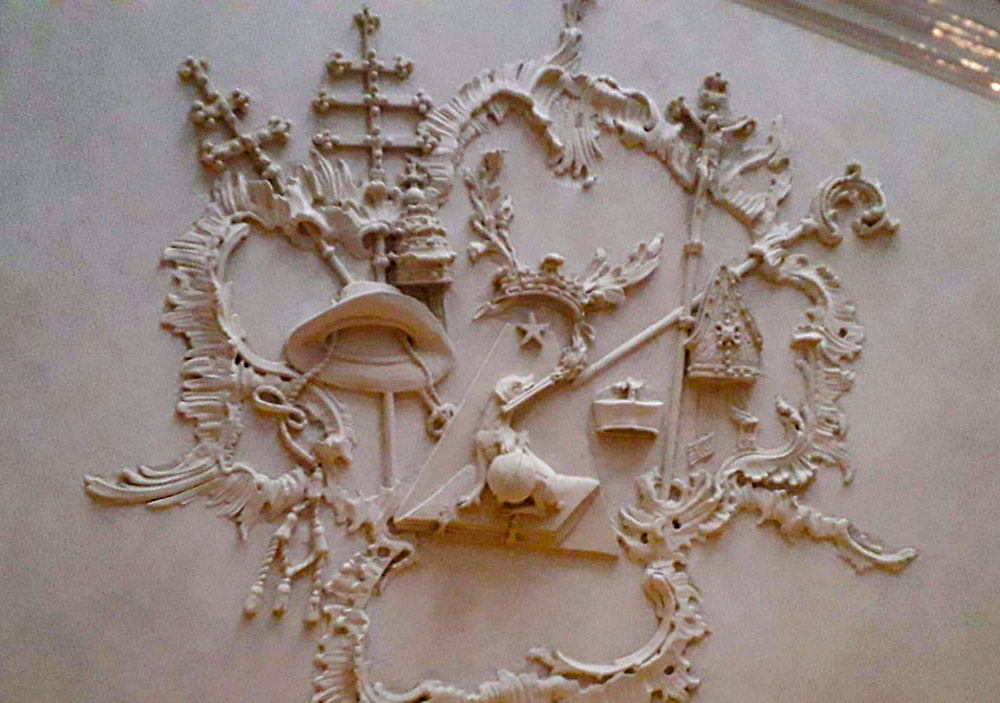 - Ліпнина з папськими гербами у стилі рококо. Фото Ореста Мальця