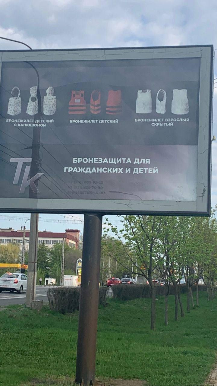 Як повідомив український журналіст Денис Казанський, фото рекламного щита опублікували місцеві пабліки. Місцевим пропонують кілька моделей “дитячих бронежилетів” – з різними принтами, з капюшоном та без.
