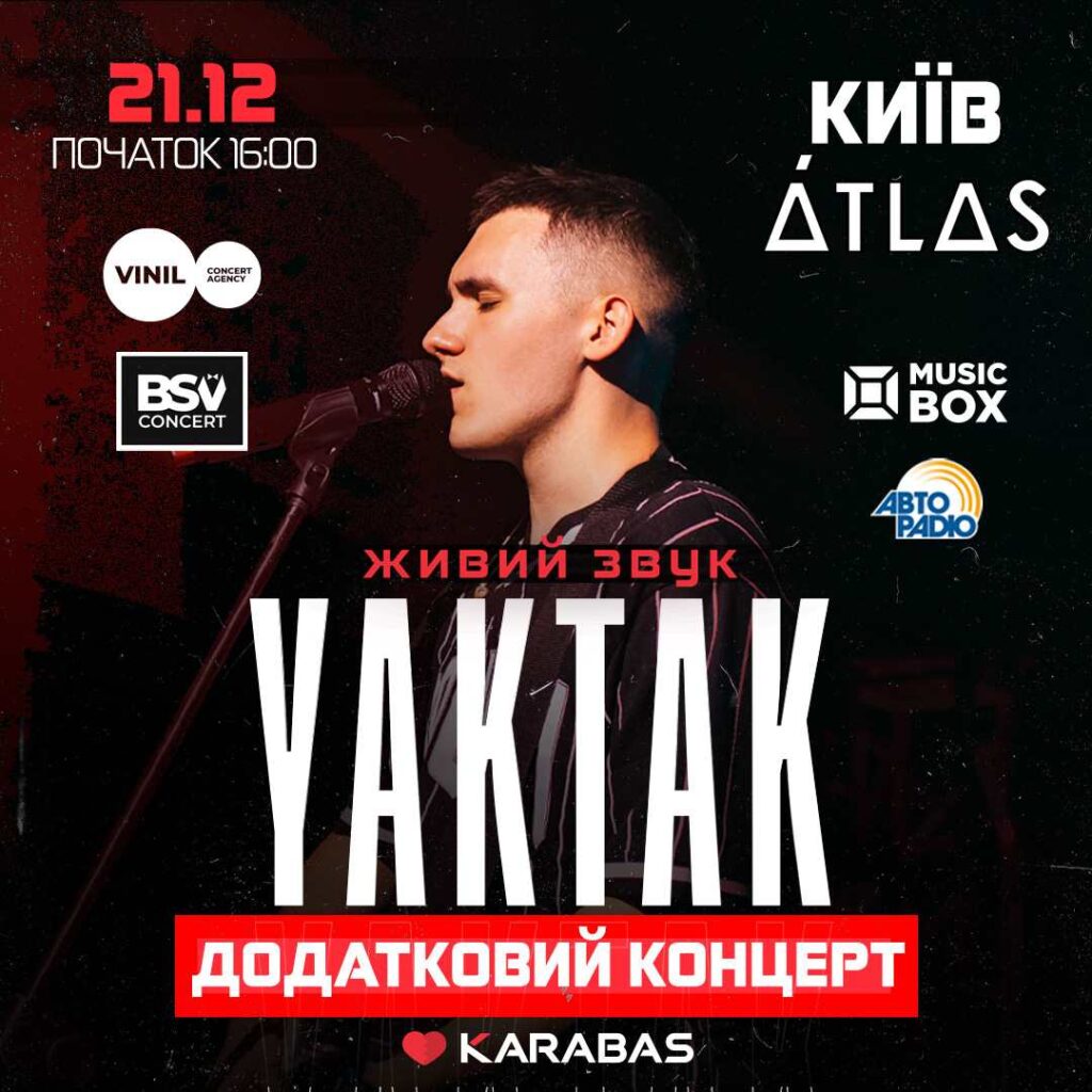 “Пісні YAKTAK влучно поєднуються з життєвими переживаннями кожного із нас! Адже він співає мовою душі, тож у нього є що Вам сказати. Чудовою нагодою почути улюбленого артиста стане сольний концерт у Києві. Побачимось!”, – запрошують на концерт організатори.