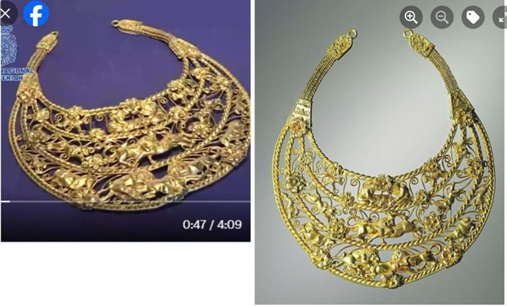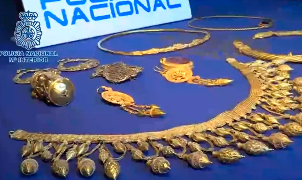 Вилучені предмети – золоті прикраси великої історичної та економічної цінності – були вкрадені та незаконно вивезені, їх збиралися продати в Мадриді.