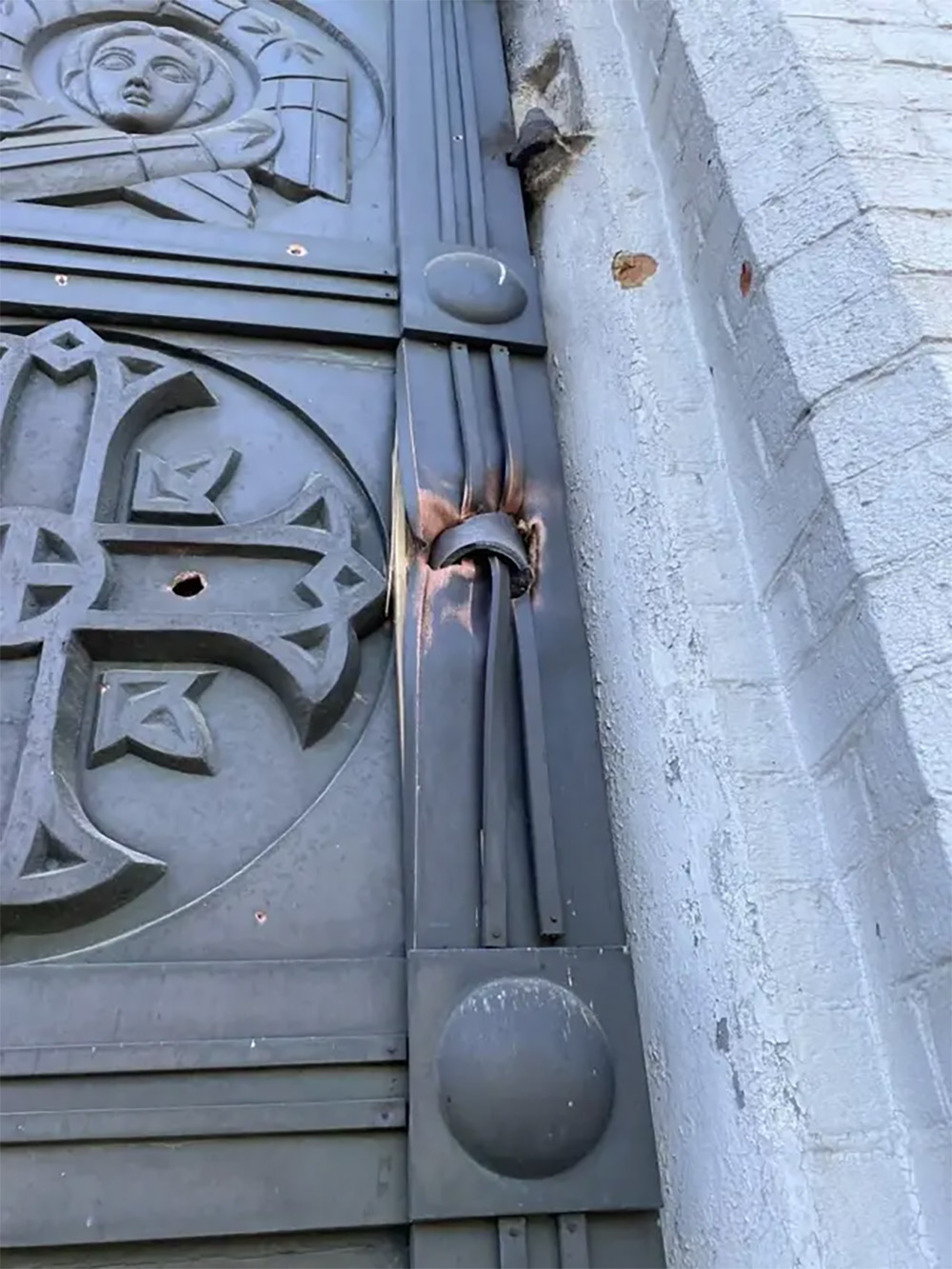 У результаті обстрілу було понівечено центральний вхід, місцями пробито металеву покрівлю, вибито декілька вікон. Також уламками снаряда посічені стіни собору й зруйнована будівля церковної крамниці.