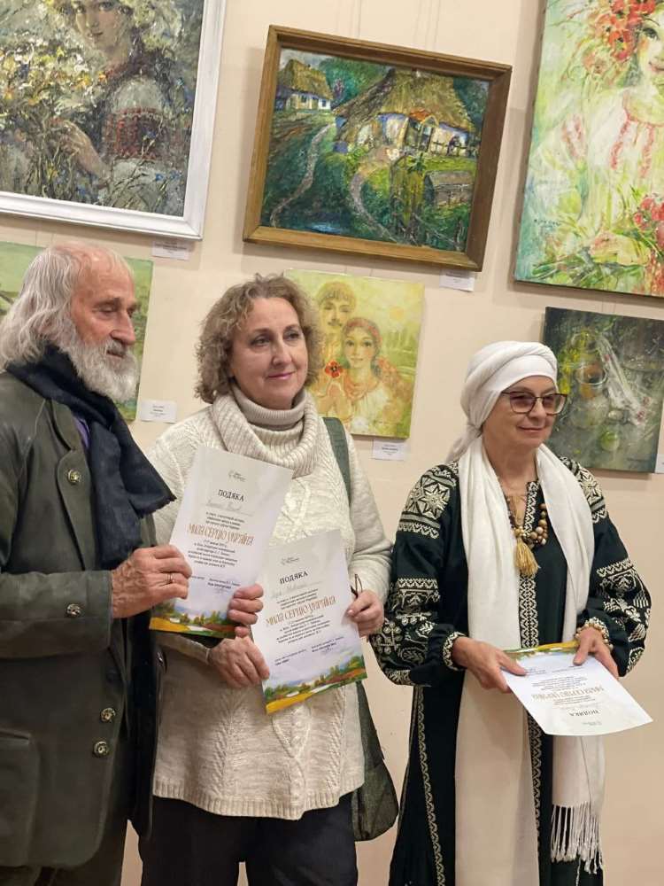 На вернісажі були представлені роботи Надії Сердюк – майстрині народної творчості, викладача образотворчого мистецтва. Її учні брали участь в численних міжнародних конкурсах.