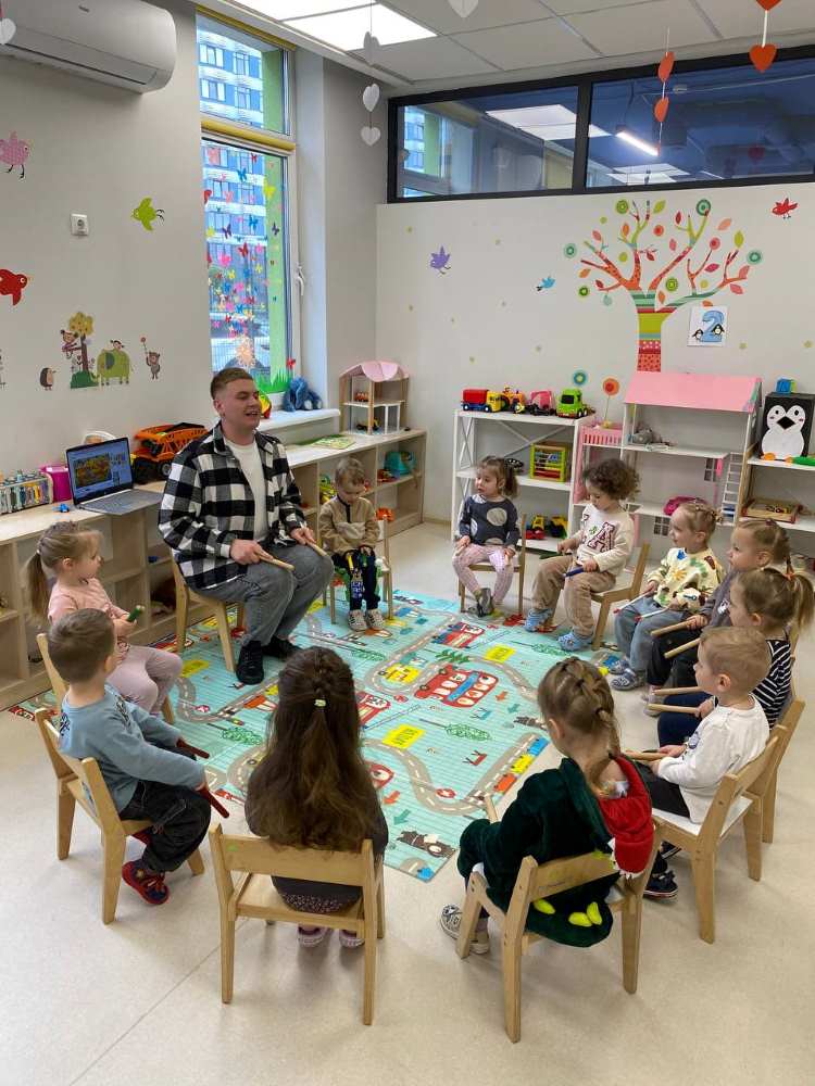 Уже понад три роки він працює з малечею віком від півтора до шести років. Навіть у складних обставинах — під час повітряних тривог чи спусків до укриттів — педагог не залишає дітей без підтримки та позитиву.