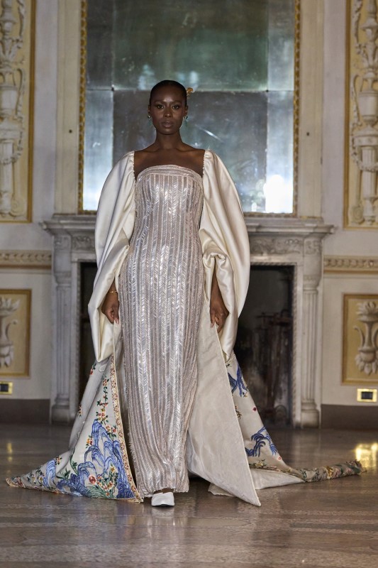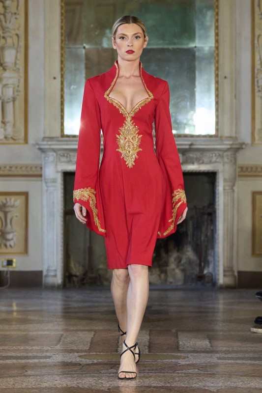 Anton Giulio Grande brought to Milan Fashion Days the authority of Italian haute couture, unveiling a vision where sensuality, artisanal savoir-faire, and a powerful sense of personality define modern elegance. Renowned for his entirely handmade creations developed in traditional ateliers where time replaces machinery, he continues to celebrate a woman whose presence transcends conventional beauty — one remembered for her character and allure.