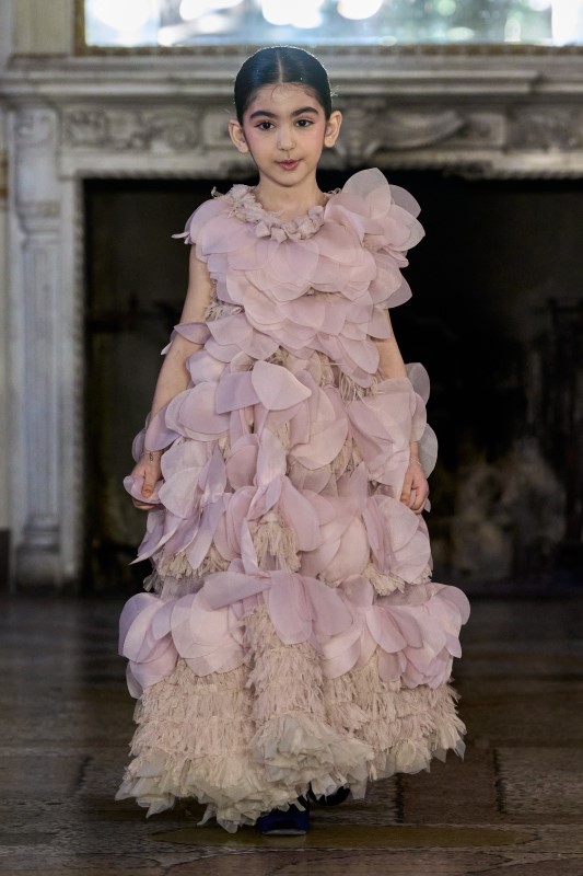 by Vel unveiled a new chapter of its signature line, Secret Garden: Alice Through the Looking Glass, a collection that turned the runway into a dreamscape of memory, reflection, and inner freedom. Founded in Ukraine by two sisters, the brand continues to explore the emotional language of childhood through an unmistakably contemporary lens, where airy, fluid dresses, sculptural volumes, and softly reimagined archival colours moved with weightless grace.