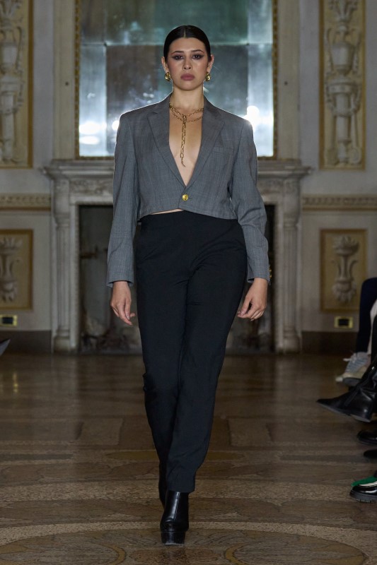 SHOW MODELS X BERKEY presented a manifesto on conscious tailoring, where sustainability met architectural precision and gender-fluid attitude. BERKEY’s sharply structured yet instinctively expressive suits — reworked through the philosophy of second hands — introduced unexpected proportions, bold color contrasts, and a new language of modern elegance. Clean lines collided with experimental styling, while body language became as essential as the garments themselves, turning each exit into a statement of individuality and transformation. Amplifying this vision, SHOW MODELS infused the runway with the energy and discipline of Latin America’s new generation, demonstrating a level of performance where presence, identity, and professionalism function as an art form.