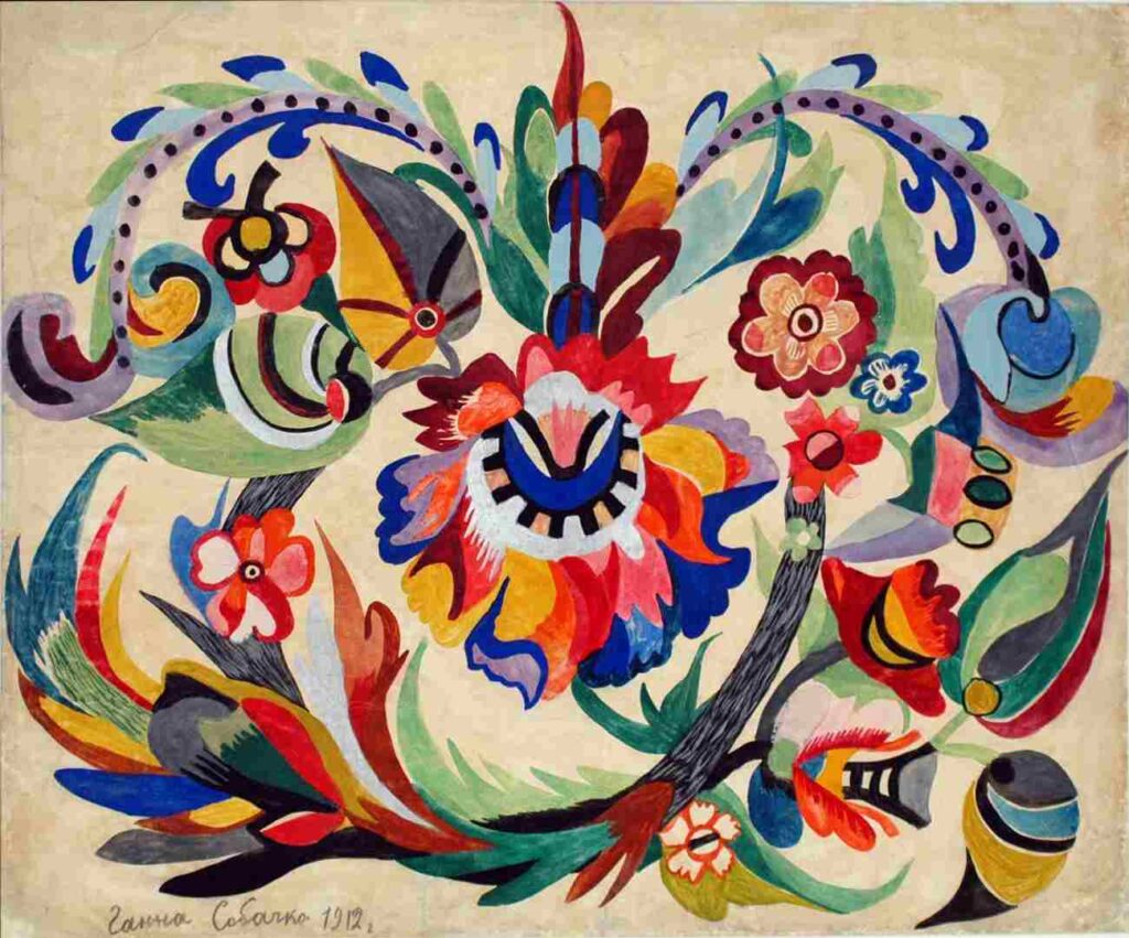 «Ганна Собачко-Шостак – майстриня яскравого і індивідуального самовияву, декоративні твори якої, за менеджерської підтримки художниці Євгенії Прибильської, побачили на початку ХХ століття у Києві, Парижі, Берліні та Нью-Йорку. Флористичні фантазії майстрині побудовані за вибуховими ритмами, з яскравим колоритом докальних, насичених барв. Квіти і листя художниця збирає у екзотичні букети, вінки, гірлянди, що трансформуються в образи птахів, комах, риб, фантастичних істот. Її схильність до інтерпретації традиційних мотивів є винятковим явищем у історії європейського мистецтва ХХ століття», – зазначає кураторка проєкту – відома мистецтвознавиця Діана Клочко.