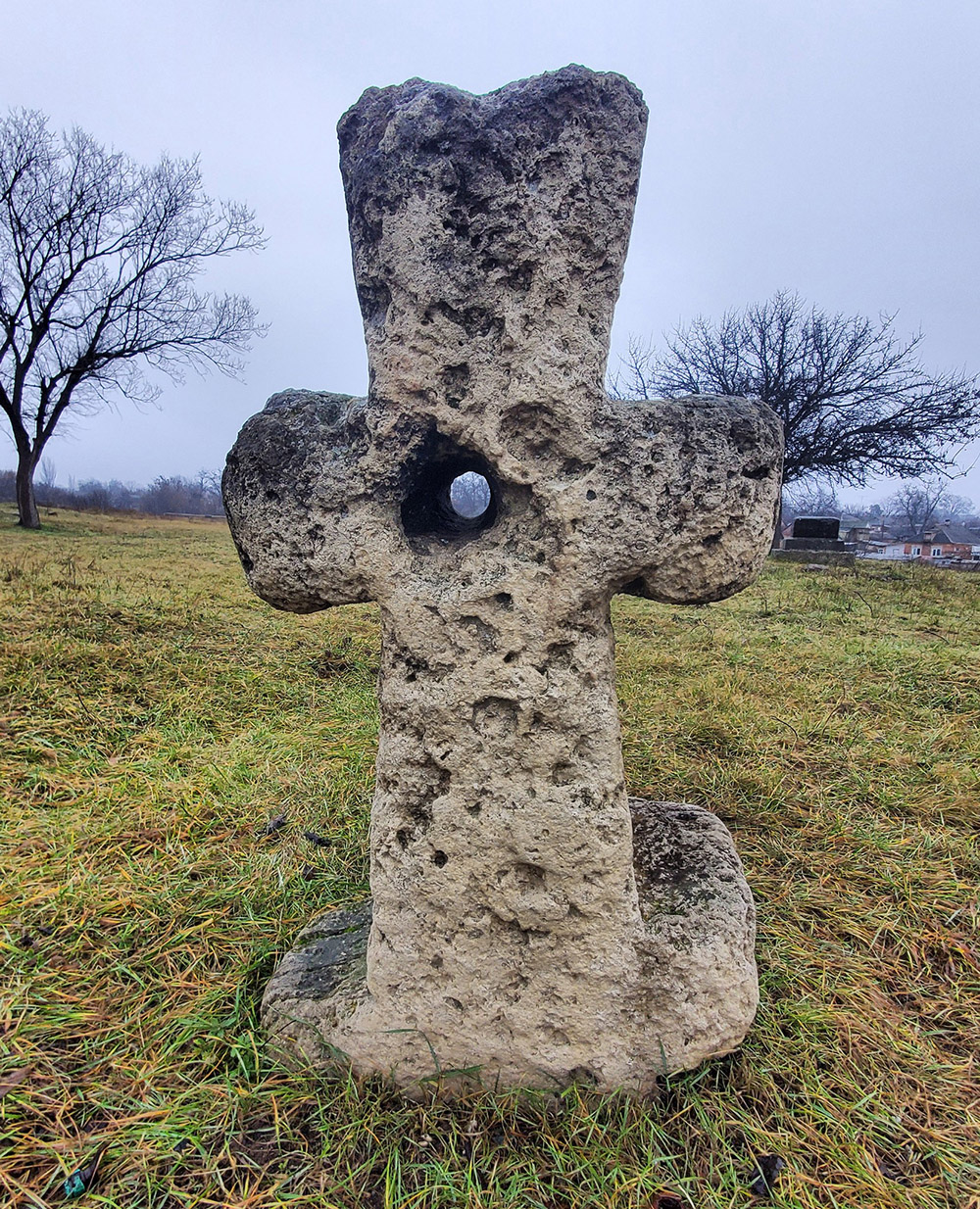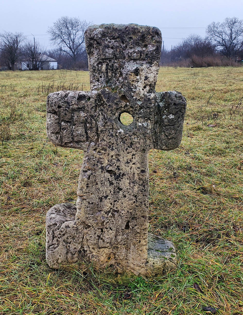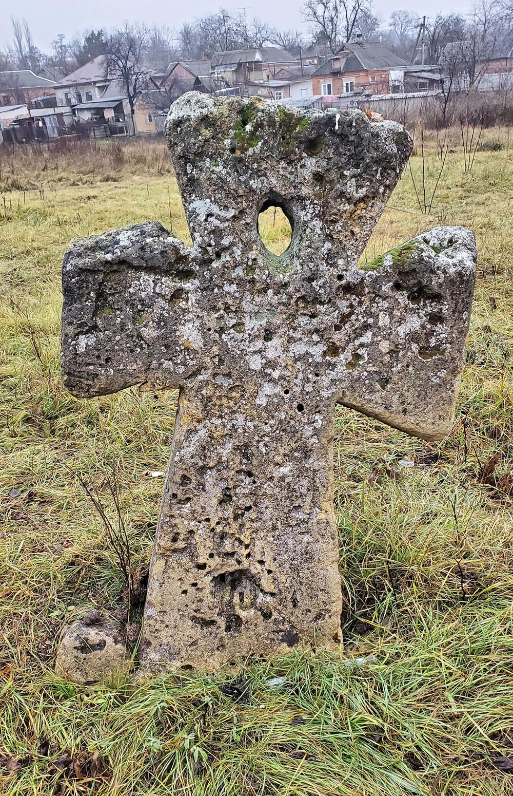 Представлені на світлинах «продірявлені» хрести знайдені у Первомайську (Миколаївська обл.), на козацьких цвинтарях Орлика, який пізніше став Ольвіополем, та Богополя. Точне датування хрестів не відоме (написи знищені часом). Приблизно, це середина XVIII століття.