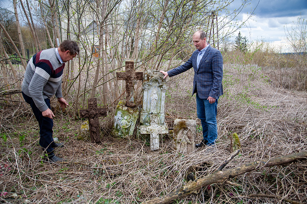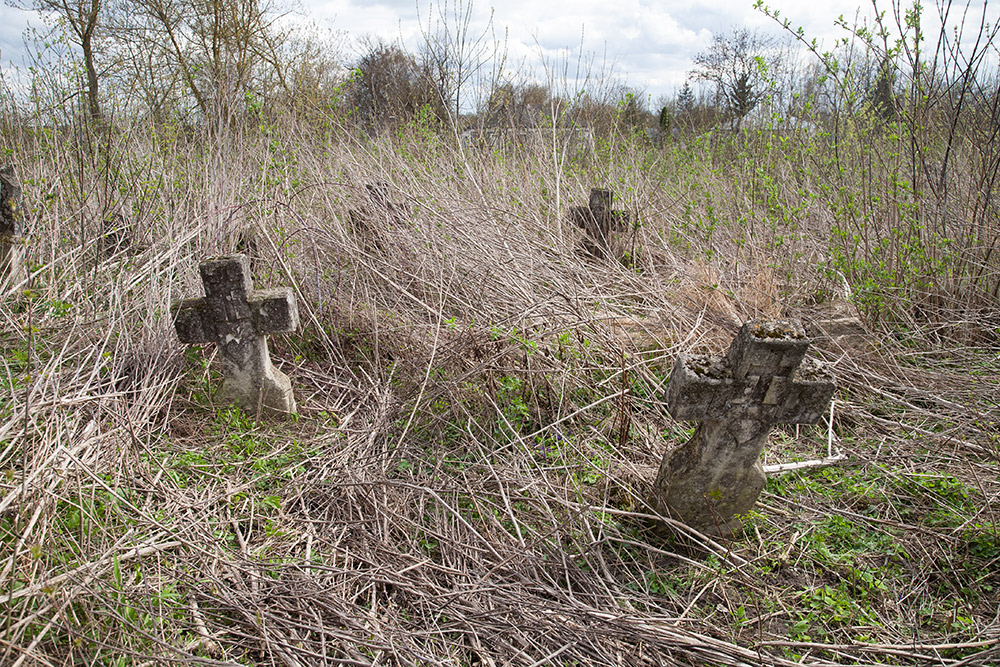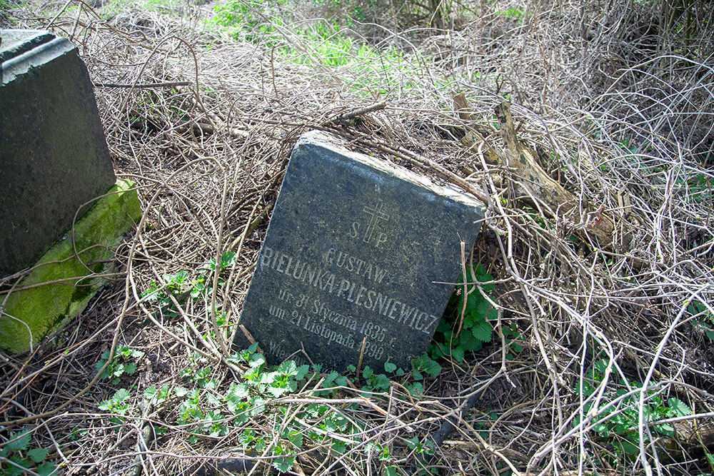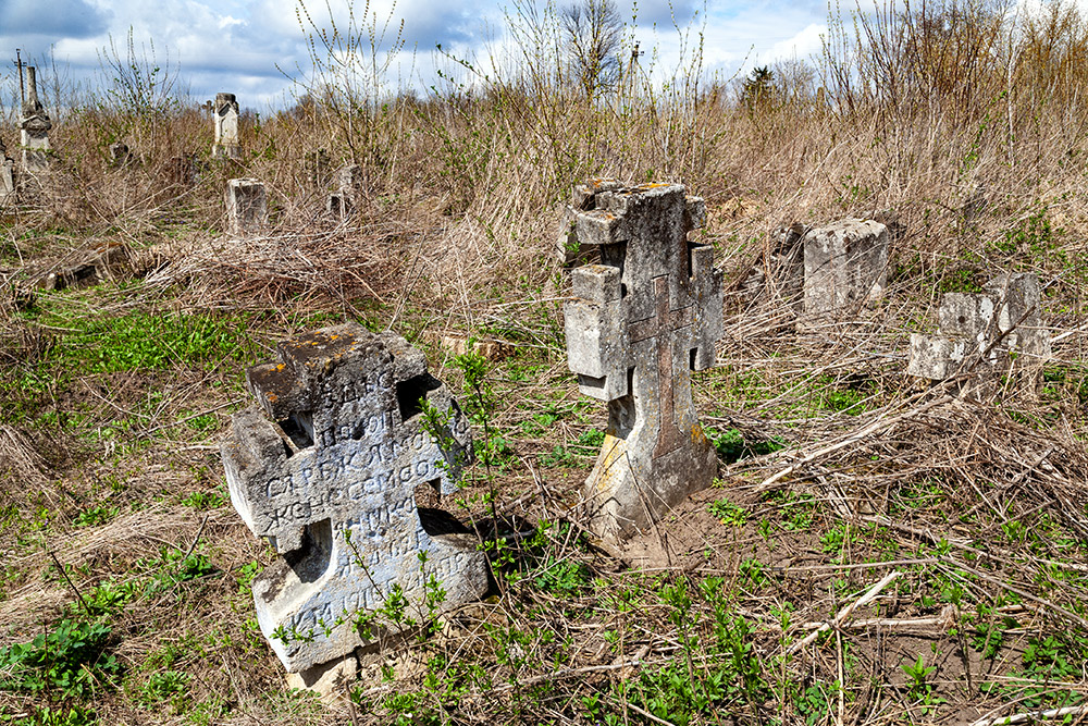 Поталанило знайти усього лише із півтора десятків старих пам’ятників. Правда цікавих. Серед них, наприклад, сплюндрований надгробок одного із дідичів села Густава Пліснєвича (інша частина належала родині вище згаданих Жуковських).