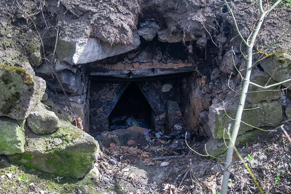 Біля дороги, що веде до храму дослідники спочатку побачили вхід до старого льоху. Враховуючи низку обставин, у першу чергу особливості мурування, це був явно не простий селянський льох. Однак без підготовки зазирнути до нього не виходило. Вхід засипано сміттям (вірогідно усередині те ж саме). Багато битого скла. До того ж смітник періодично підпалювали і все вкрито шаром сажі. Тут і розчистка потрібна, і комбінезони.