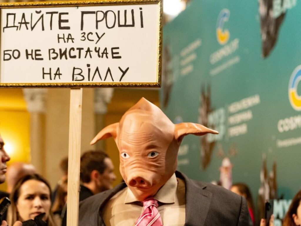 “Ваші набиті кишені – відібрані життя військових”. Melovin у масці свині публічно звернувся до тих, хто під час війни розкрадає Україну